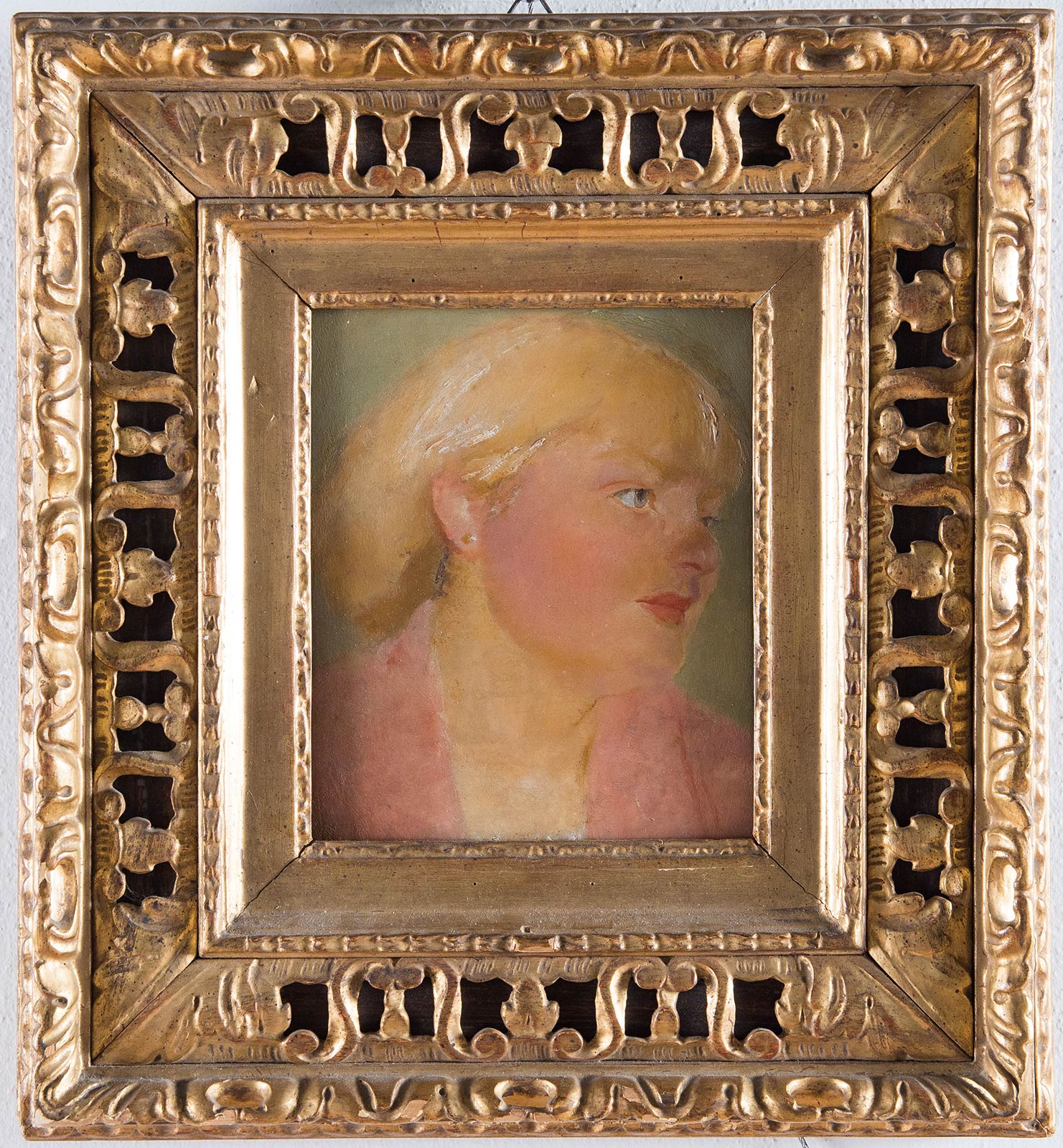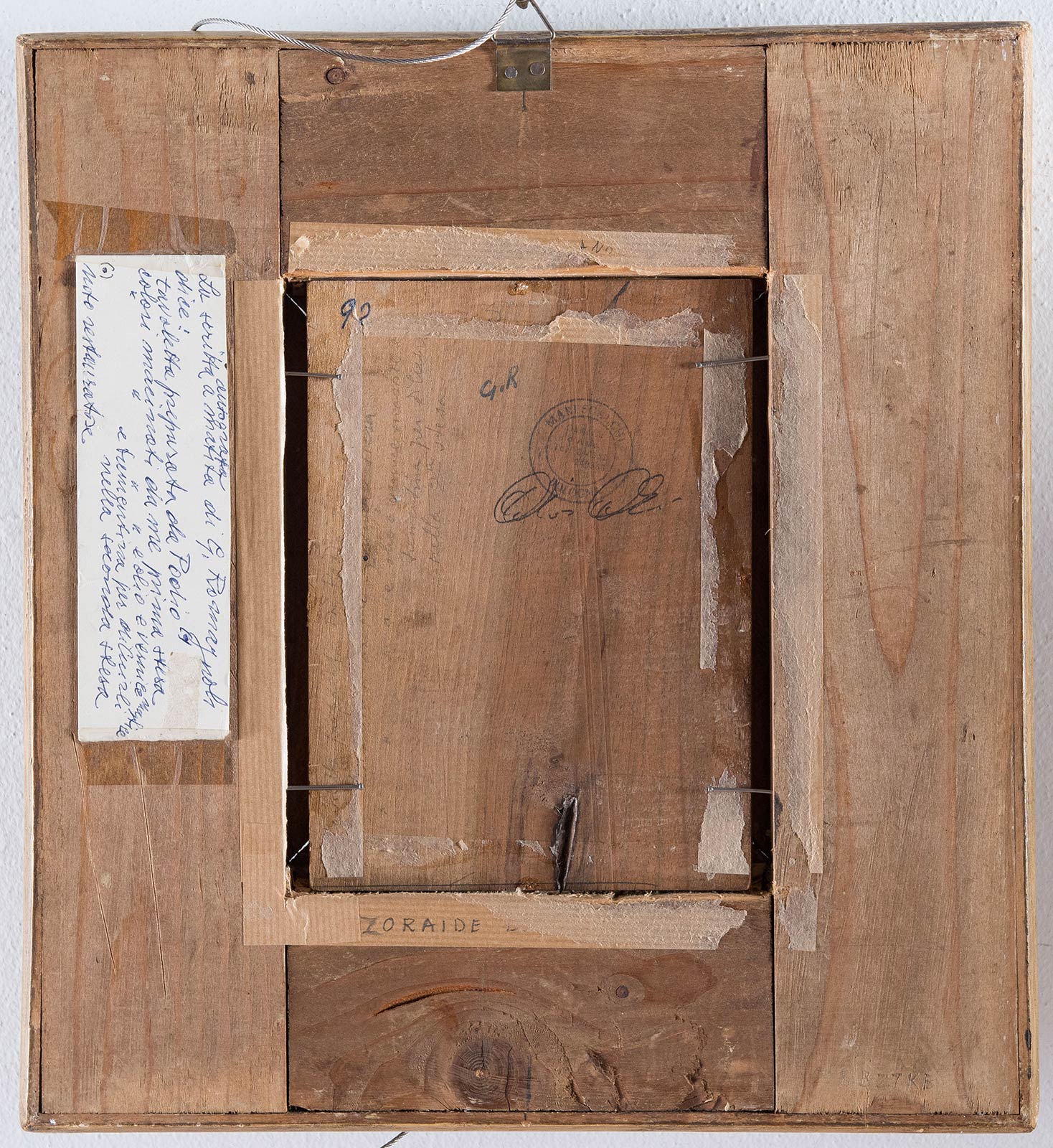 Giovanni Romagnoli (Faenza 1893 – Bologna 1976), “Zoraide da giovinetta”, 1940 c. Olio su tavola, al retro sigla G.R., H cm 20.2x14.8 Al retro reca timbro Marescalchi – Bologna Galleria d’Arte e iscrizione a matita autografa di Romagnoli. Bibliografia di riferimento: Opera pubblicata in ‘Giovanni Romagnoli – L’eterna giovinezza del colore – 1893-1976’, Associazione Bologna per le Arti’ n. 87, p. 24 a piena pagina.