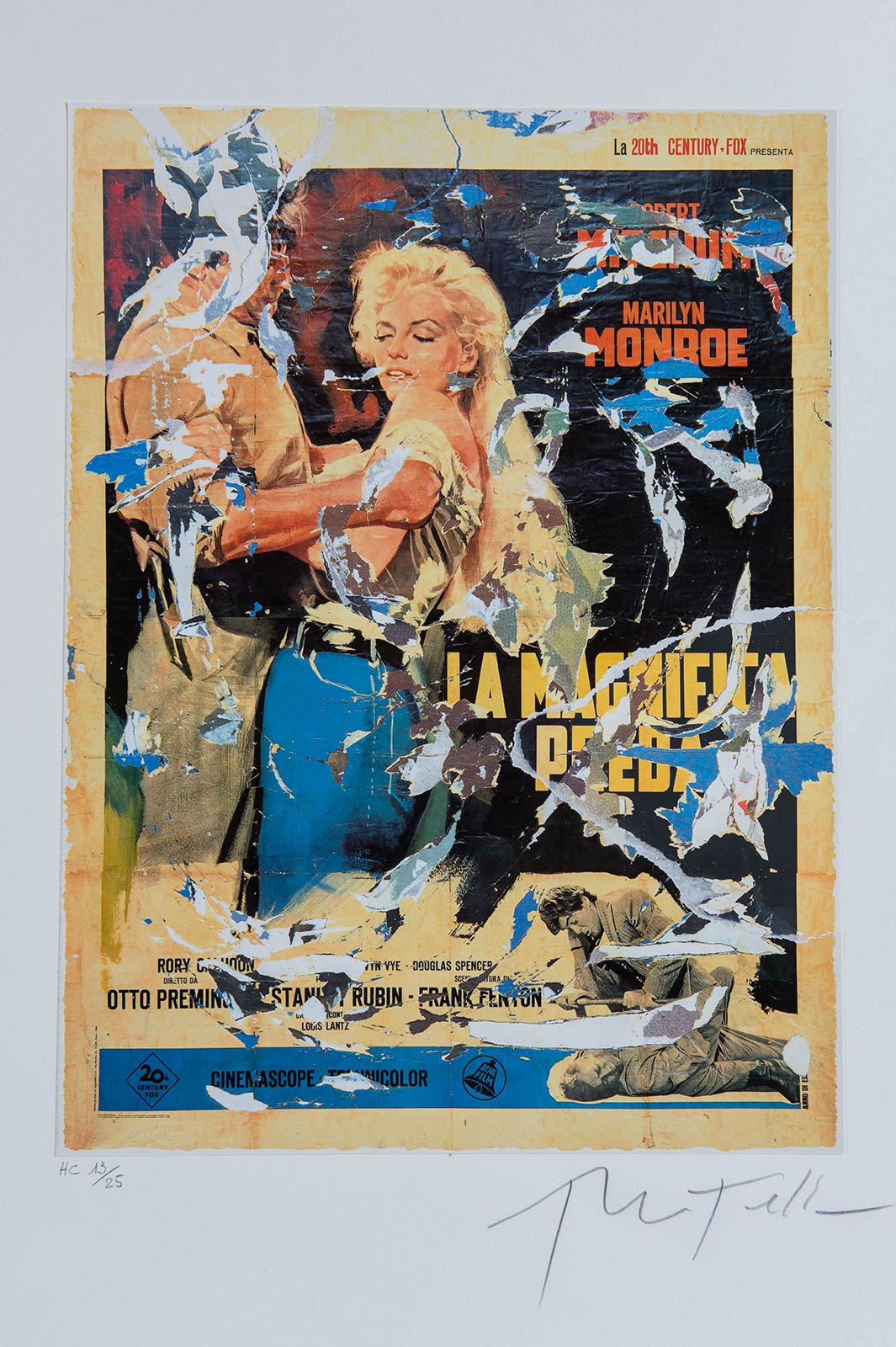 Domenico "Mimmo" Rotella (Catanzaro 1918 – Milan 2006 ), “Le farfalle sono pensieri”. Serigrafia decollage a mano su carta, firmata in basso a destra Rotella, numero di tiratura in basso a sinistra HC 13/25, Lastra H cm 36.5x27 – Foglio H cm 50x70 Accompagnato da poesia di Alda Merini.