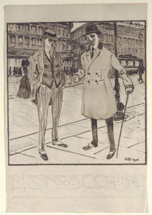 G. Baracchini Figure, 1908 China e china acquerellata su carta, cm. 31x21 Sigla e data in basso a destra.