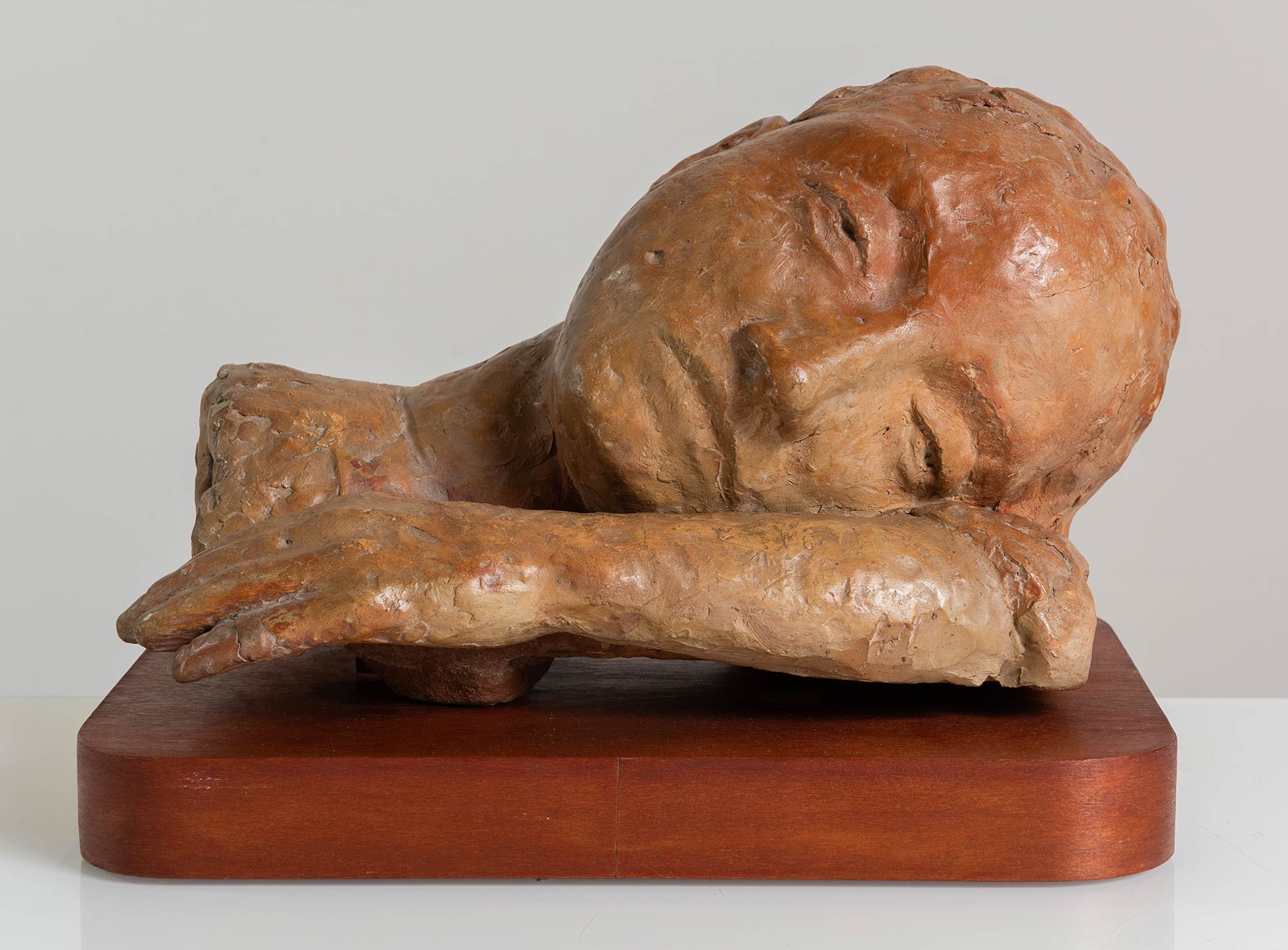 Annibale Zucchini (Ferrara 1891 – Garbagnate Milanese 1970), “Dormiente”, 1940 c. "Scultura in terracotta, H tot cm 26x40x23 Esposizioni: ‘Annibale Zucchini – Sculture’, 12 Ottobre – 6 Novembre 2004, Galleria Ricerca d’Arte – Roma; ‘Annibale Zucchini – Sculture dal 1918 al 1969’, Galleria Civica di Arte Moderna – Palazzo dei Diamanti Ferrara. Bibliografia: Opera pubblicata nel catalogo ‘Annibale Zucchini – Sculture’ a cura di Marialivia Brunelli, p. 45 a piena pagina; Opera pubblicata nel catalogo ‘Annibale Zucchini – Sculture dal 1918 al 1969’, p. 70, fig. 27 a piena pagina."