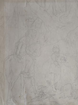 Luigi Bechi (Firenze, 1830 - 1919) Cimabue e Giotto (Fronte e retro) Matita su carta, cm. 29,5x22