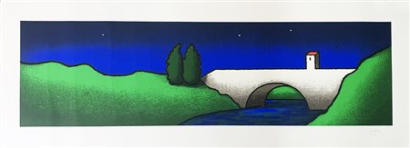 Tino Stefanoni NOTTURNO (IL PONTE SUL FIUME) serigrafia su carta, cm 50x140;...