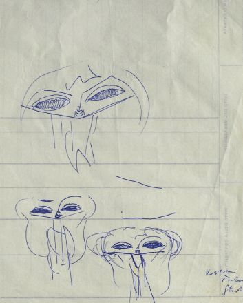 Voltolino Fontani (Livorno, 1920 - 1976) Volti Penna su carta, cm. 18,5x14,5 Firma in basso a destra.