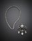 Collana con grande broche/pendente a volute in oro 750/1000, argento e diamanti