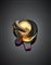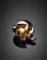 Spilla in oro giallo lucido, rubini sintetici, madreperla e corno nero, g 53,60 circa, lungh. cm 5,50 circa. Firmata Alberto Zorzi 1989