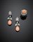 Demi parure in oro bianco, diamanti e corallo rosa composta da orecchini penden