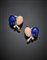 Pear and tapered diamond pink coral and synthetic lapis white gold earclips, g 16.60 circa, length cm 2.70 circa. In Faraone case