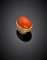 BARERA Anello in oro giallo cesellato e corallo arancione cabochon di mm 25,20x