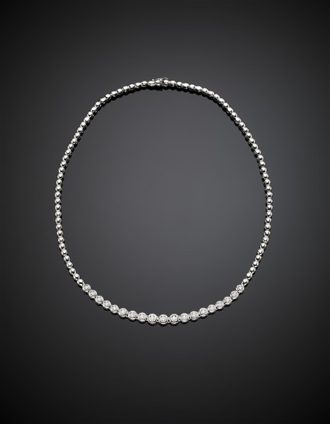 White gold necklace in the centre accented with diamonds in all ct. 2.5 circa, g 28.05 circa, length cm 43.10 circa. Marked 2341 AL.