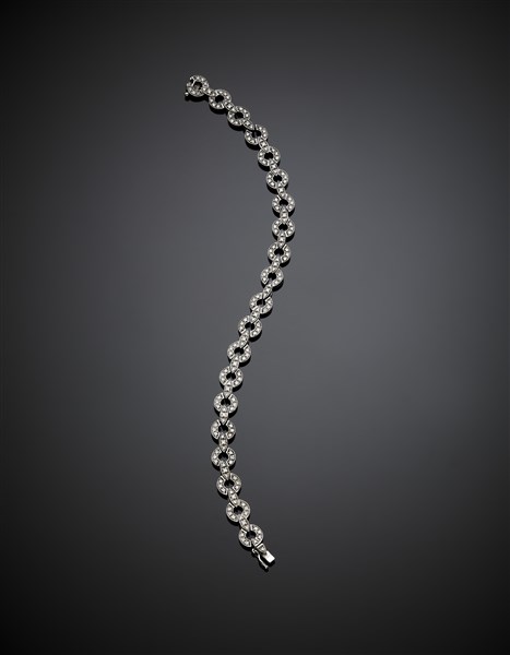 Bracciale in oro bianco e diamanti rotondi, g 15,70 circa, lungh. cm 19,70 circa.