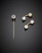 Gemelli e spillone in oro giallo, perle coltivate di mm 8,50 circa e zaffiri cabochon, dettaglio in oro bianco, complessivi g 8,60 circa. Marcati 416 FI.