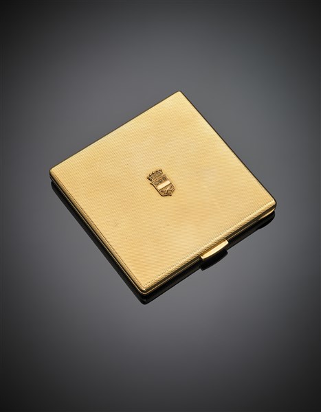FRATELLI CACCHIONE Portasigarette in oro giallo zigrinato con stemma araldico,