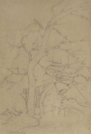Guglielmo Micheli (Livorno, 1862 - 1926) Albero lungo il ruscello Matita su...