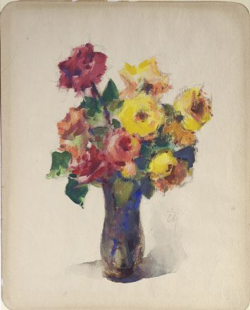 Corrado Michelozzi (Livorno, 1883 - 1965) Fiori Olio su carta, cm. 29,5x24 Firma in basso a destra.