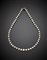 Collana a scalare di perle coltivate da mm 6,70 a mm 9,30 circa con chiusura in oro bianco, diamanti e zaffiri, infilatura in oro bianco, g 35,90 circa, lungh. cm 53 circa.
