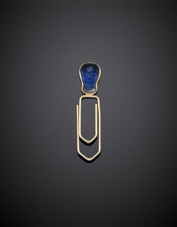Yellow gold carved blue paste bookmark, g 3.30 circa, length cm 5 circa.