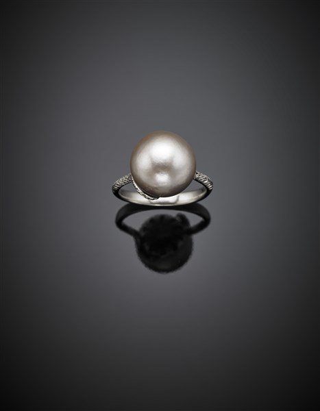 Anello in oro bianco con perla grigia di mm 12.90/13.30 circa, g 7,30 circa mis