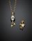 Lotto in oro giallo e perle grigie composto da una spilla a forma di papero di