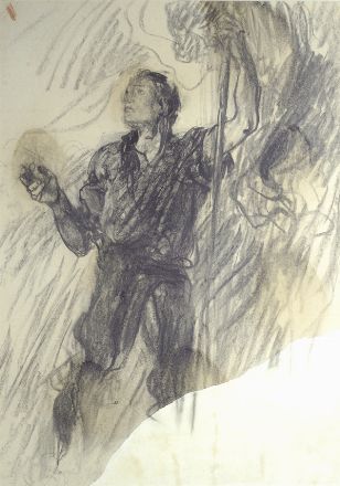 Plinio Nomellini (Livorno, 1866 - Firenze, 1943) Figura virile Carboncino su carta, cm. 68,5x48 (rotture).