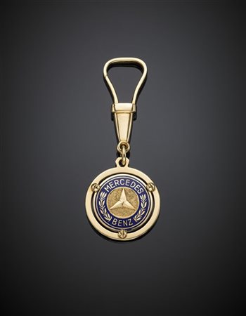 Yellow gold key ring with Mercedes Benz logo, g 30.70 circa, length cm 7.70 circa. Signed Faraone. In original case