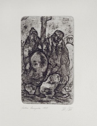 Gastone Razzaguta (Livorno, 1890 - 1950) Contadini, 1917 Acquatinta, mm. 496x350 (foglio); mm. 193x120 (lastra); es. VII/XII Firma e data in lastra in alto a destra.