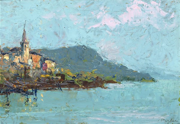 Ugo Mazzolari "Nervi: mattino" olio su tavola (cm 19x29) Firmato in basso a des
