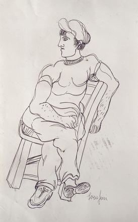 Giuseppe Serafini (Montelupo Fiorentino, 1915 - 1987) Uomo seduto Penna su carta Firma in basso a destra.