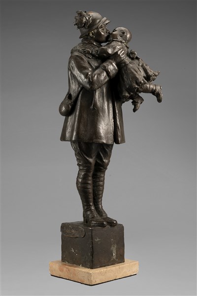Lotto 1272 | Egidio Boninsegna "La partenza del soldato" scultura in bronzo (h cm 42) poggia