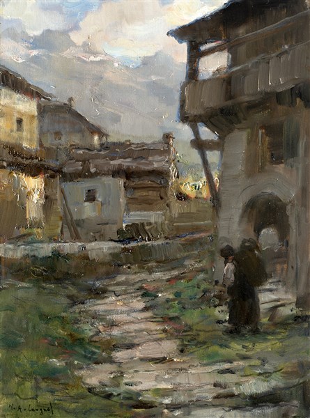 Vittore Antonio Cargnel "Case a Poffabro" olio su tela (cm 55x40) Firmato in ba