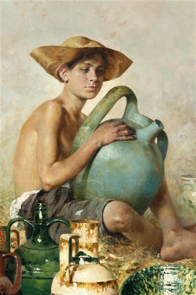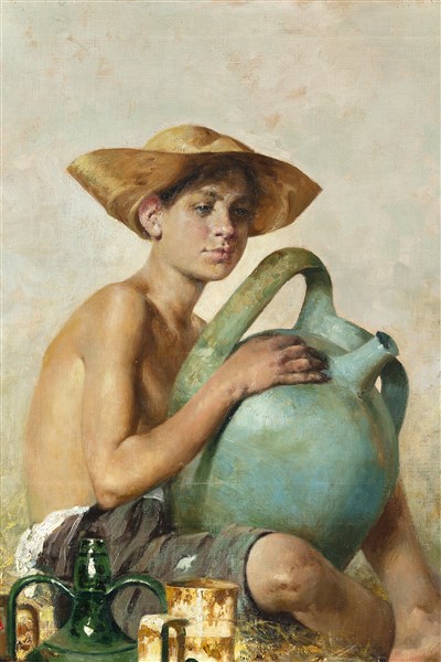 Vincenzo Caprile "L'acquaiolo" olio su tela (cm 130x81) Firmato e locato Napoli