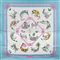 Foulard in seta "Les Fantaisies du Roy", Annie Faivre 1986, fondo bianco toni pastello, bordo turchese acqua (segni d'uso)