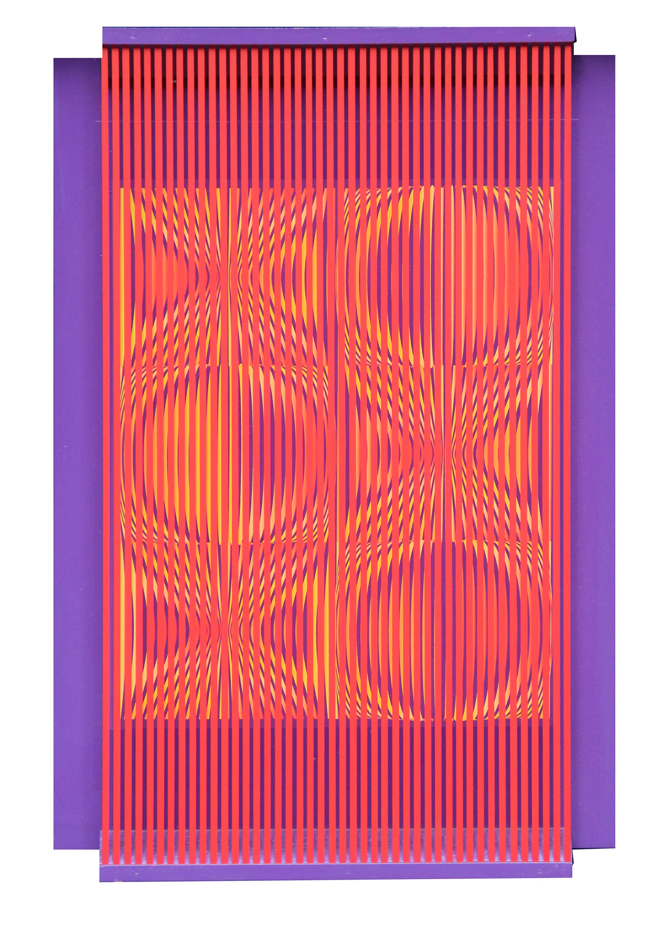 BIASI Alberto, Smorfie in rosso 2000 lamelle di PVC e tecnica mista su tavola cm. 53 x 36, . . Firma, data, titolo, numero di archivio "Alberto Biasi, 2000, Smorfie in rosso, OC/871";