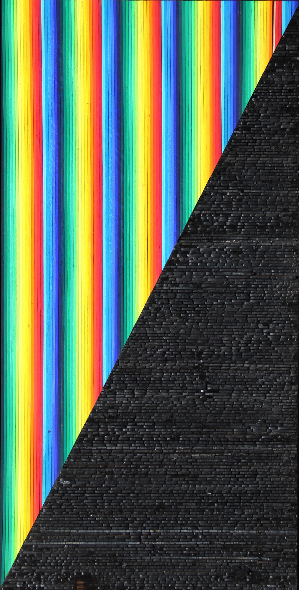 CAVELLINI Guglielmo Achille, Carbone geometrico 1970 tecnica mista su tavola cm. 114 x 55, . . Etichetta della mostra "Cavellini 1914-2014", Palazzo Ducale, Venezia, 1986;