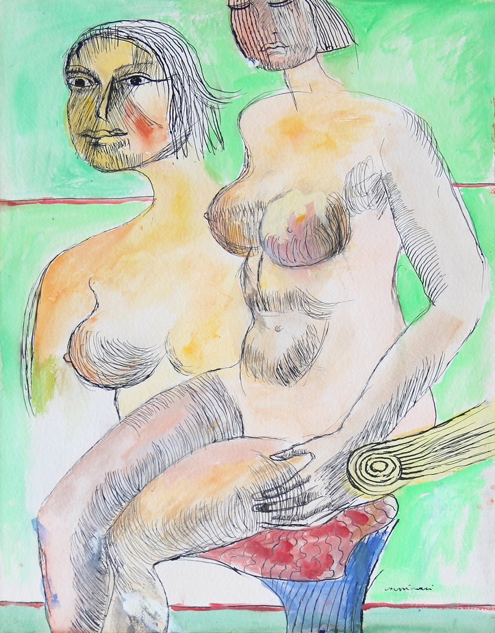 CASSINARI Bruno, Figure 1990 tempera su carta intelata cm. 70 x 50, . Autentica dell'artista su fotografia con numero 1360 in data 04/09/1990. Firma "Cassinari" (in basso a destra)