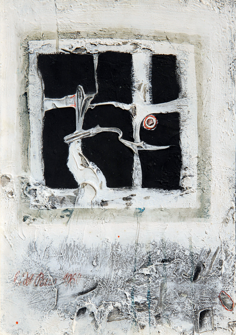 DEL PEZZO Lucio, Senza titolo 1960 tecnica mista su tavola cm. 50 x 35, . Autentica dell'Archivio Lucio Del Pezzo su fotografia. Firma, data "L. Del Pezzo, 1960" (in basso a sinistra)