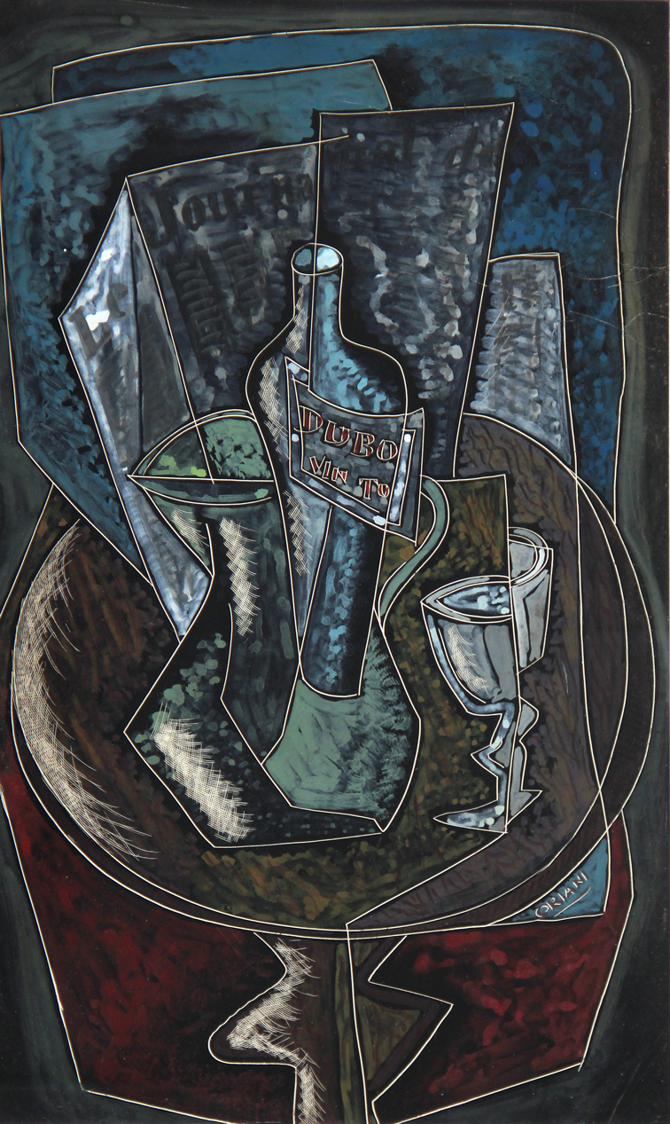 ORIANI Pippo, Objects 1931/32 (1931 - 1932) encausto e graffito su cartone gessato cm. 48.5 x 28, . Autentica rilasciata dalla Fondazione Oriani con il n. FPO/MV 1280, nel mese di settembre 2020. Firma "Oriani" (in basso a destra)