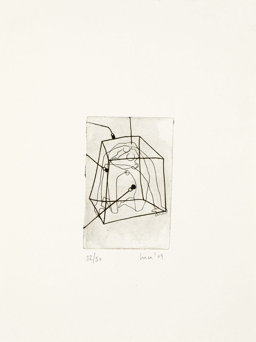 Cartella contenente un'acquaforte di Massimo Ballabio recante firma, datazione (2009), numerazione (Esemplare 32/50) a matita al fronte e timbri dell'Artista al retro e un'acquaforte di Luca Moscatelli recante firma , datazione (2009) e numerazione (Esemplare 32/50) a matita al fronte