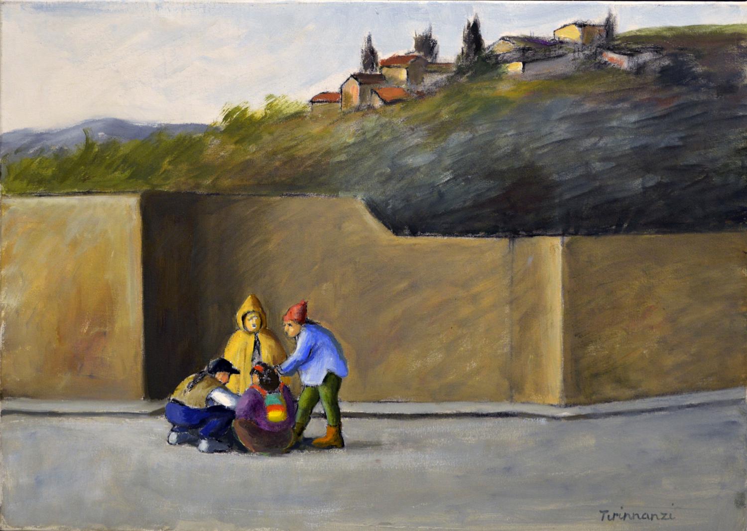 Nino Tirrinnanzi IL GIOCO DELLA TOPPA olio su tela, cm 50x70 firma