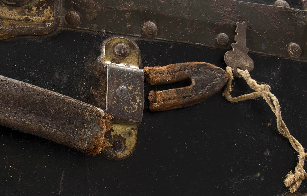Baule guardaroba, chiave originale. Altezza 104 cm, profondità 36 cm, larghezza 55 cm