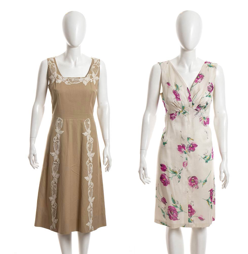 Due abiti in cotone pattern floreale (fazzoletto abbinato) e applicazioni in pizzo.