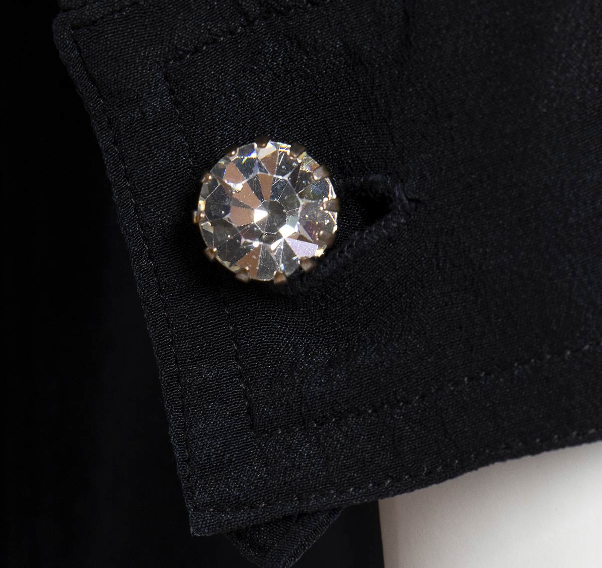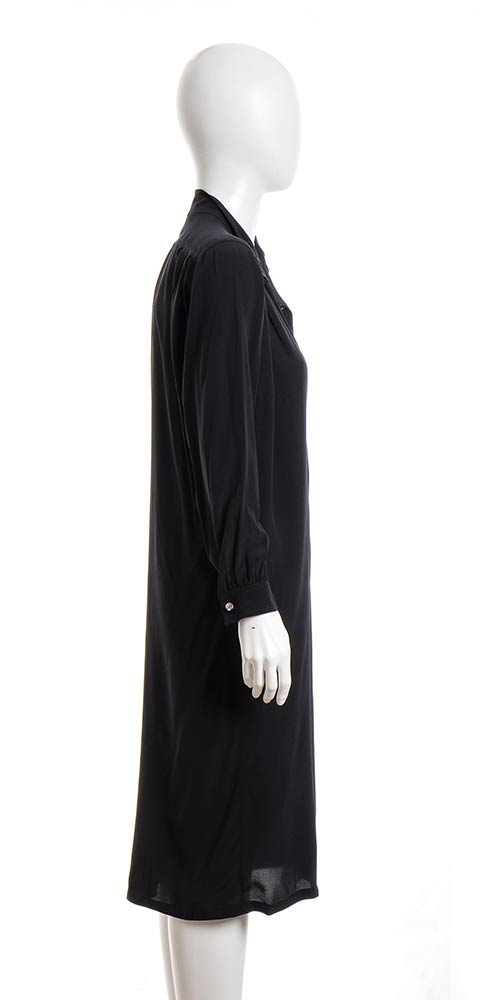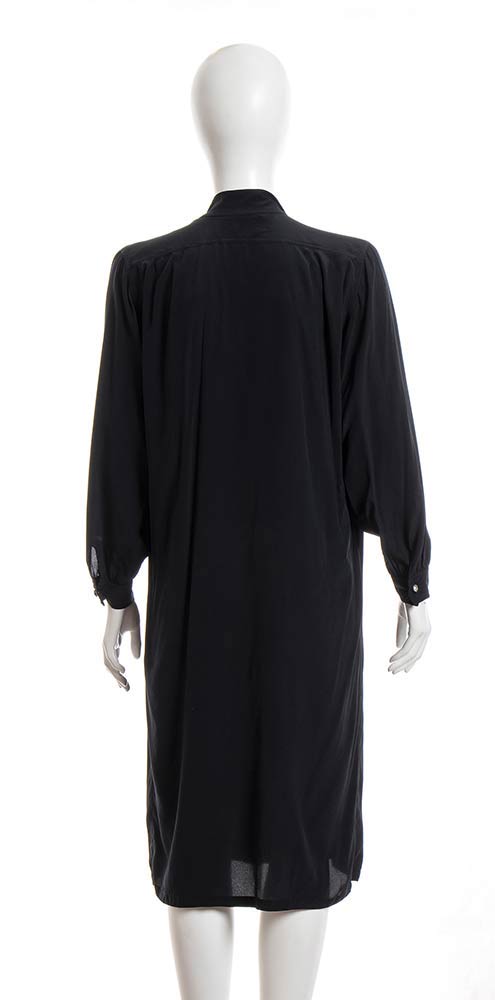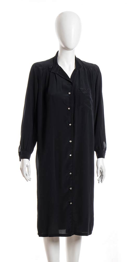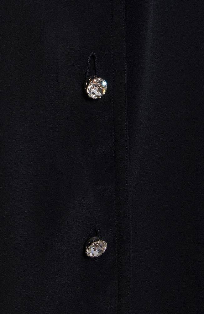 Maxi camicia/abito in crepe di seta nera, bottoni gioiello.
