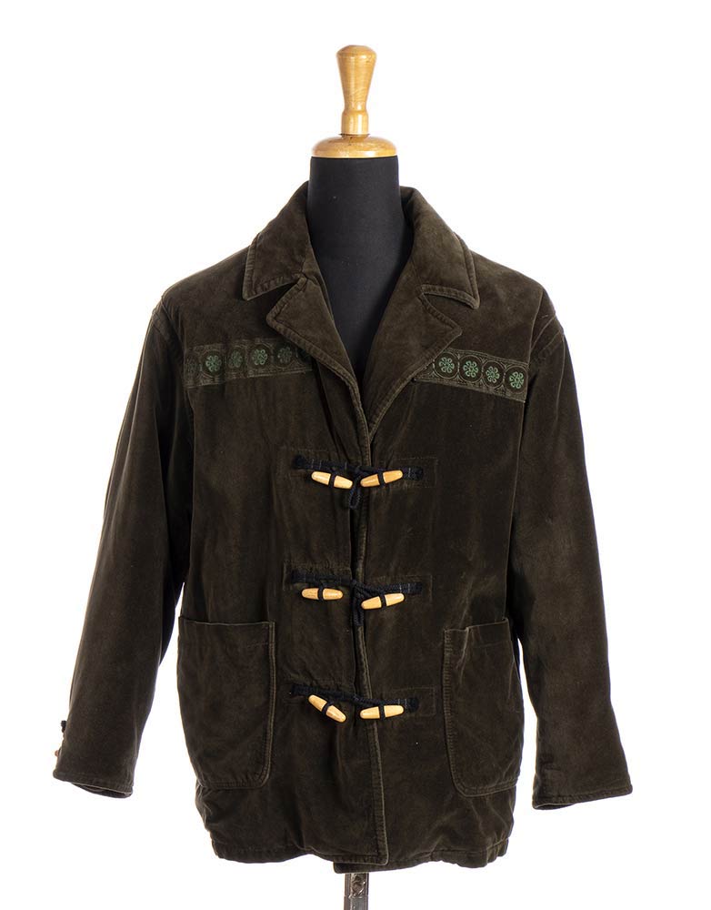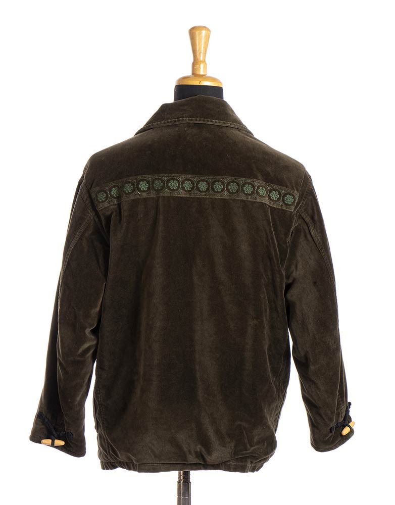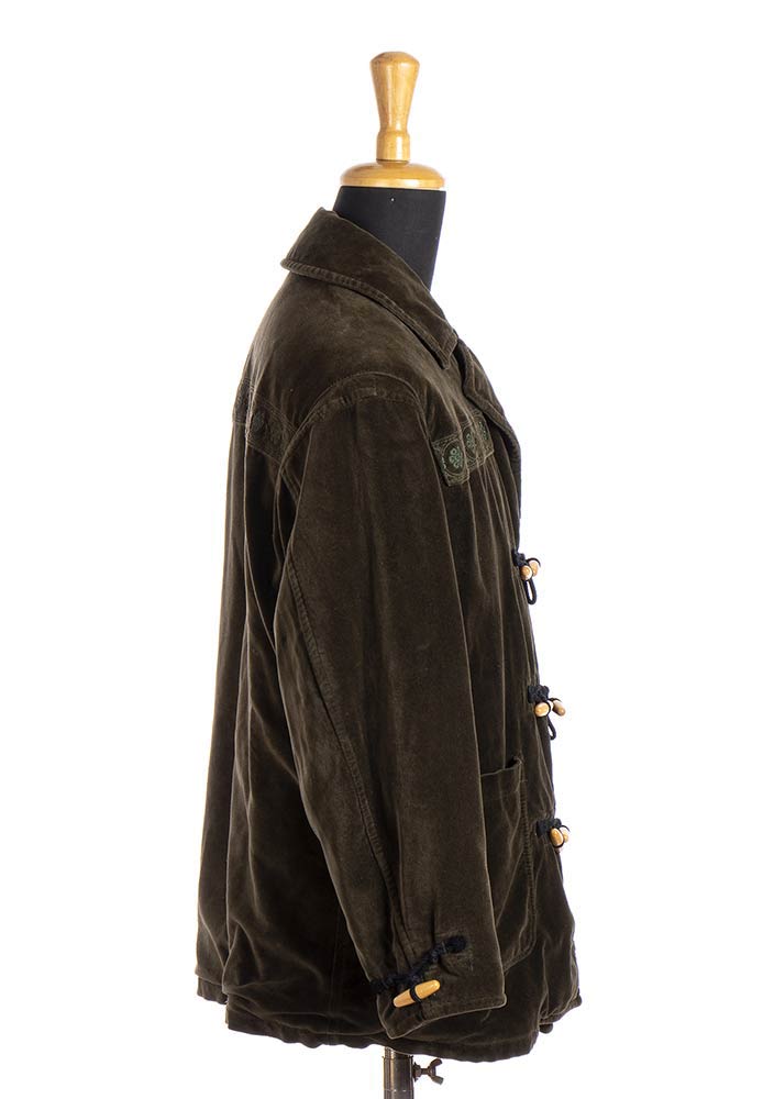 Giubbotto uomo in velluto verde scuro, abbottonatura modello montgomery