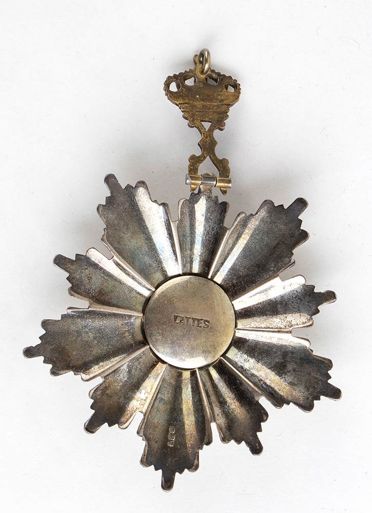 Insegna di terza classe dell’ Ordine del Nilo, argento e smalti, Lattes, senza anello di sospensione.