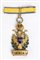 Insegna di terza classe dell’Ordine della Corona ferrea,piccole mancanze allo smalto dell’anello di sospensione con piccolo nastro in seta gialla non pertinente.