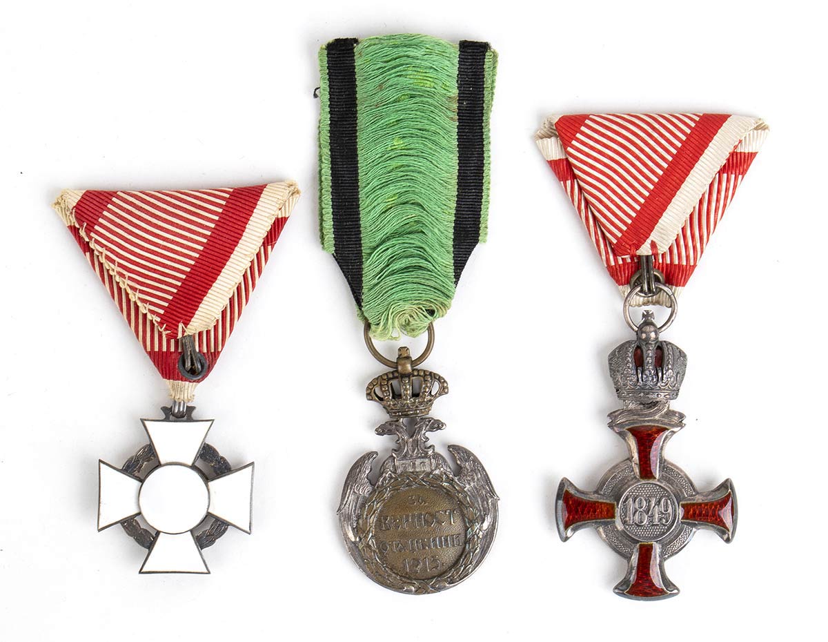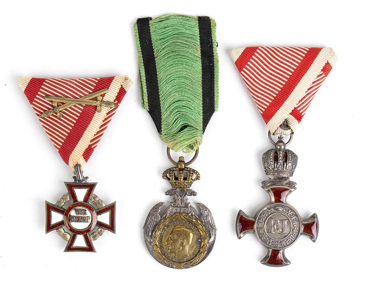 Lotto 368 | Lotto di 3 medaglie,due ordini austriaci, un ordine al merito di 3° classe ed una croce al merito militare, una medaglia commemorativa yugoslavia