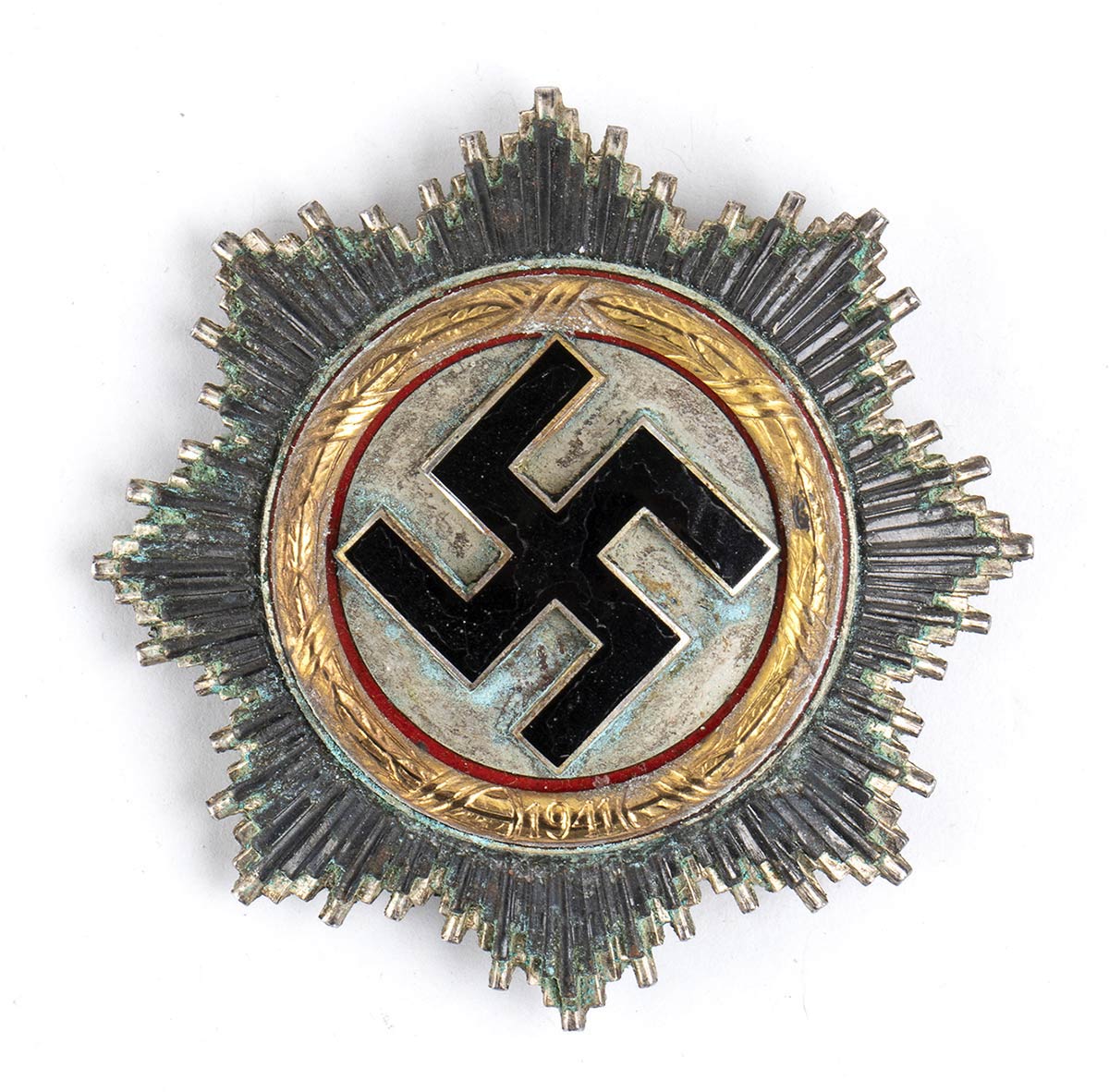 Vecchia copia di deutsche kreuz, metallo argentato, dorato e smaltato, molto ben eseguita.