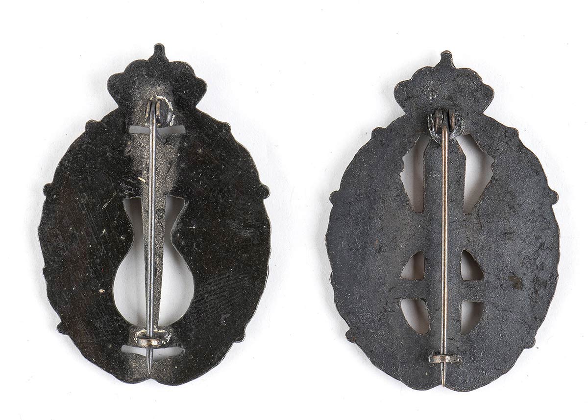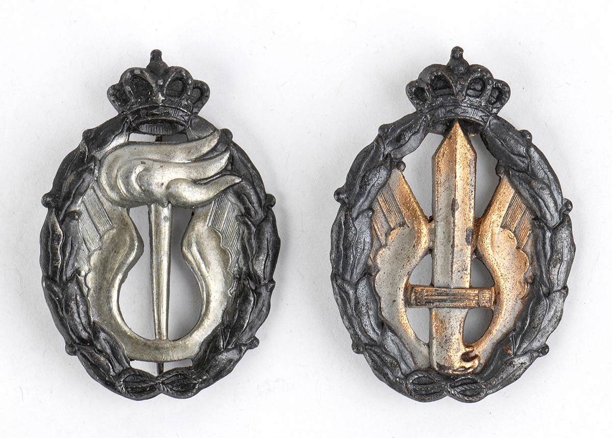 Un distintivo per assalto classe bronzo e distintivo per osservazione aerea classe argento.