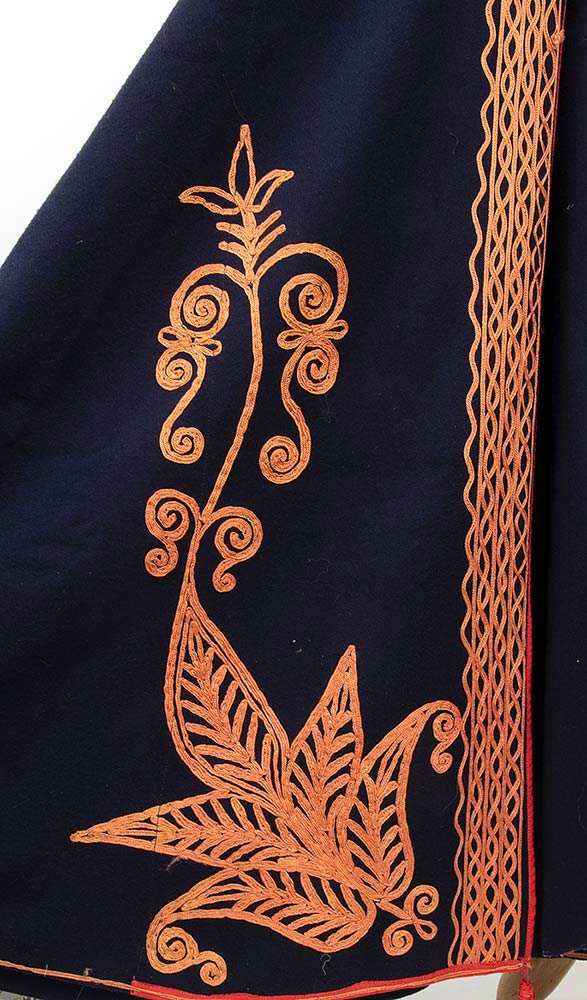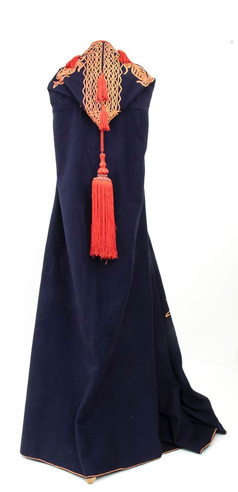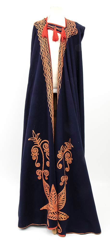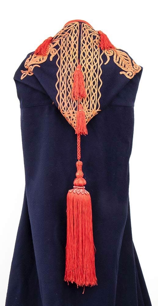 Bel burnus in pesante panno di lana turchina con ricami rosso scarlatti, il mantello èp completo di tutti i fiocchi in numero regolamentare. Ottimo stato