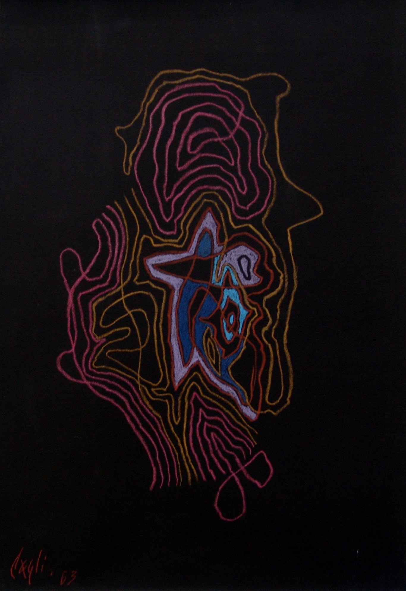 certificato di autenticità della Meeting Art di Vercelli, cartiglio sul retro della Galleria Il Chiostro di Saronno, opera pubblicata in "Corrado Cagli - La collezione Ebe Cagli Seidenberg" a cura di Giorgio di Genova, Edizioni Bora di Bologna, 1987