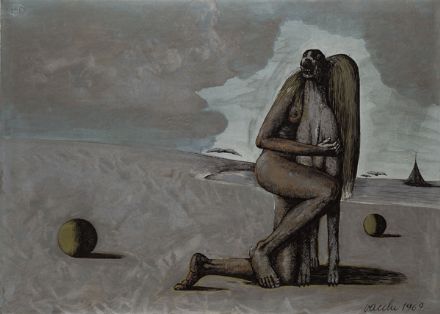 Sergio Vacchi (Castenaso, 1925) Bagnante con cane, 1969 Tecnica mista su...